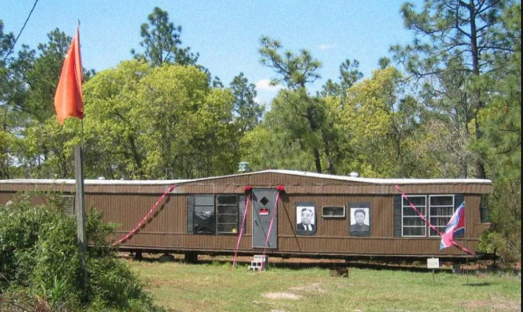 Foi nesse período inicial de sua vida que Sutter começou a ter problemas com a polícia e, como revelado posteriormente em documentos judiciais, quando iniciou seu relacionamento com o FBI. Depois de tentar comprar uma pistola Glock e um silenciador de um agente disfarçado, parece que ele foi recrutado ( aliás, por favor, não comprem armas suspeitas e ilegais; essa é a tática básica do FBI para prender e recrutar extremistas ). Sutter, que apoiava abertamente Saddam Hussein, a Al-Qaeda e o Irã no início dos anos 2000, obviamente atraiu a atenção federal, e suas tentativas de se conectar com esses grupos islâmicos por “telefone e internet” provavelmente só agravaram a situação. Preso em 2003, ele foi libertado em novembro de 2004 e logo fundou uma nova organização, o “Partido Popular Rural”, com sede em seu trailer na Carolina do Sul, que foi renomeada para “Comuna Popular Central do Partido Popular Rural: Militantes Juche Songun e Jim Jones pensaram no Comunismo da América do Norte”. Isso mesmo, Sutter agora era um aliado americano da Coreia do Norte, enquanto permanecia envolvido em grupos nacionalistas brancos como a Nação Ariana e a Liga do Sul. Já em 2005, alguns membros da clandestinidade nacionalista branca começaram a suspeitar que Sutter era um informante do FBI, incluindo outro pregador dos Filhos de Javé, Morris Gulett. Foi nesse mesmo período que Sutter começou a defender uma estratégia política explicitamente aceleracionista, e eu diria que isso não é coincidência. Começando a perder prestígio na cena nacionalista branca, Sutter aprofundou-se na formação de conexões com o grupo Juche americano, ainda mais nichado, culminando em uma aliança formal com outro grupo pró-Coreia do Norte, o Grupo de Estudos Políticos Songun (EUA), liderado por John Paul Cupp, que visitou a Coreia do Norte como convidado oficial do governo. Cupp liderou outros grupos, fundando o Comitê Norte-Americano Contra o Sionismo e o Imperialismo e cofundando a Frente Popular Socialista Europeia-Americana. Ambos eram, na verdade, o que hoje tendemos a chamar de nacional-bolchevismo, ou, mais simplesmente, comunistas nacionalistas que priorizam sua raça. No entanto, como em qualquer história envolvendo nacionalistas brancos de esquerda vivendo juntos em um parque de trailers, as aventuras sexuais típicas da classe baixa branca parecem ter se tornado um problema. John Paul Cupp se apaixonou por Jillian Hoy, também conhecida como “Camarada Morrison”, e depois de ser hospitalizado com apendicite, convenceu-se de que ela o havia envenenado a mando de Sutter, já que ela era secretamente sua namorada. Cupp acabou caindo em desgraça com a Coreia do Norte por causa de sua defesa do nacionalismo branco, e Sutter se casou com Hoy, levando a mais uma mudança de imagem.